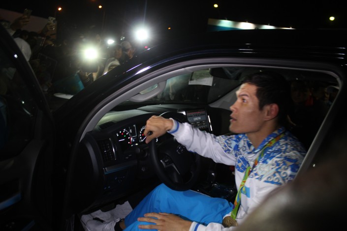 Олимпийскому чемпиону в Рио Данияру Елеусинову подарили новый Toyota Land Cruiser, передает корреспондент Tengrinews.kz. Также внедорожники Toyota Land Cruiser Prado получили Василий Левит и Гузель Манюрова. Акимат города решил преподнести такой щедрый подарок этим спортсменам, так как именно они представляли Олимпийскую сборную Казахстана от Астаны.