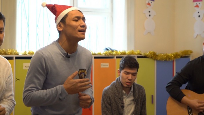 Марсель Алсеитов приехал в центр развития не один, вместе с ним был музыкант, аккомпанировавший ему на гитаре. В колпаке Санта-Клауса певец исполнил свои хиты и по совместительству любимые песни Тамилы - "Бұл өмірде" и "Асыл Жанымай". Девочка с удовольствием танцевала в такт любимым мелодиям.