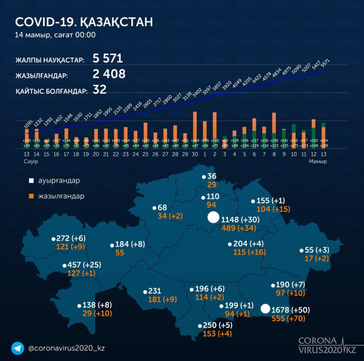 Отметим, что от коронавируса в Казахстане излечились уже 2408 человек. Умерли 32 пациента.