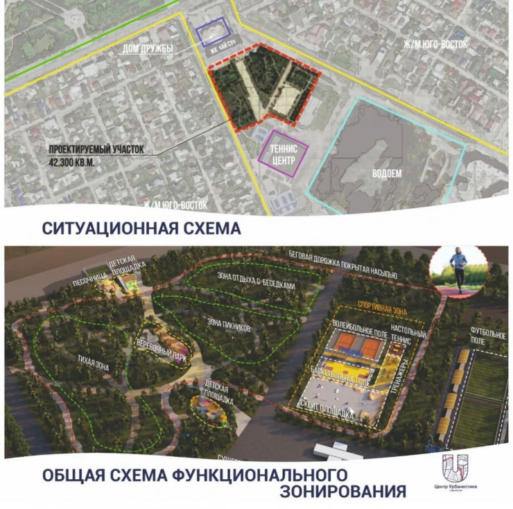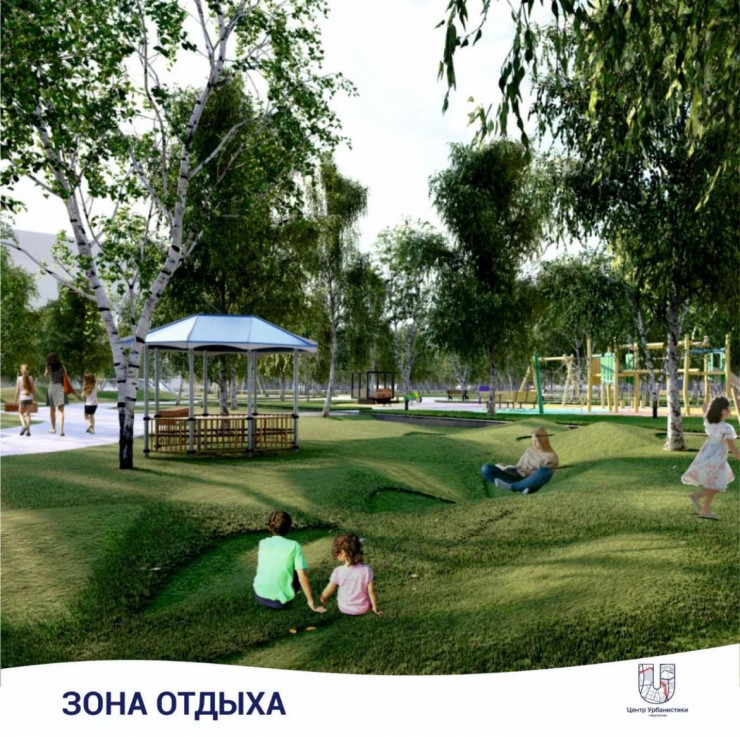 По плану здесь появятся игровые зоны, созданные из экологических материалов, волейбольная и баскетбольная площадки, беговая дорожка, воркаут-зона, прогулочная инфраструктура и зоны отдыха.