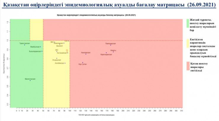 В "зеленой" зоне: Туркестанская, Жамбылская, Мангистауская, Кызылординская области.