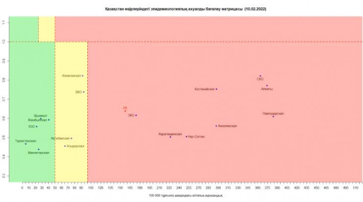 На утро 10 февраля в "красной" зоне остаются Нур-Султан, Алматы, Акмолинская, Западно-Казахстанская, Карагандинская, Костанайская, Павлодарская и Северо-Казахстанская области.