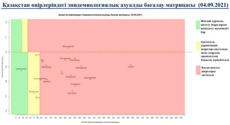 В "желтой" зоне были Восточно-Казахстанская, Жамбылская области, а теперь перешла и Северо-Казахстанская область.