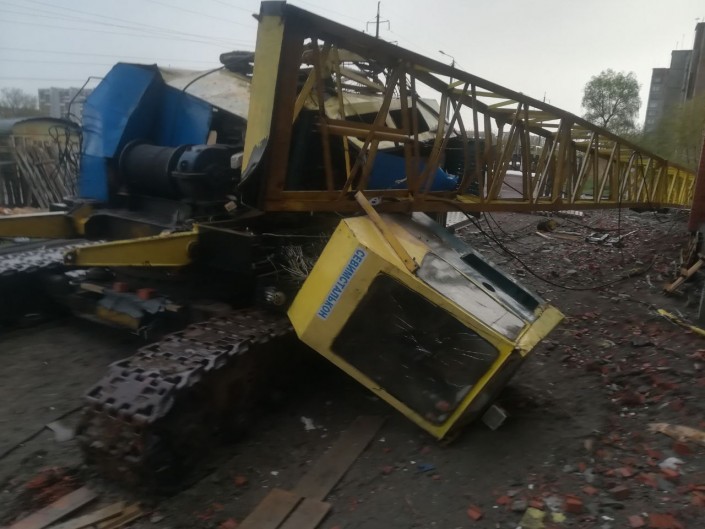 Так, на строительной площадке, где строится 5-этажный дом, из-за сильного ветра до 23 метров в секунду в 20.30 произошло падение крана на гусеничном ходу МКГ-25БР (стрела 28 метров). Жертв и пострадавших нет.