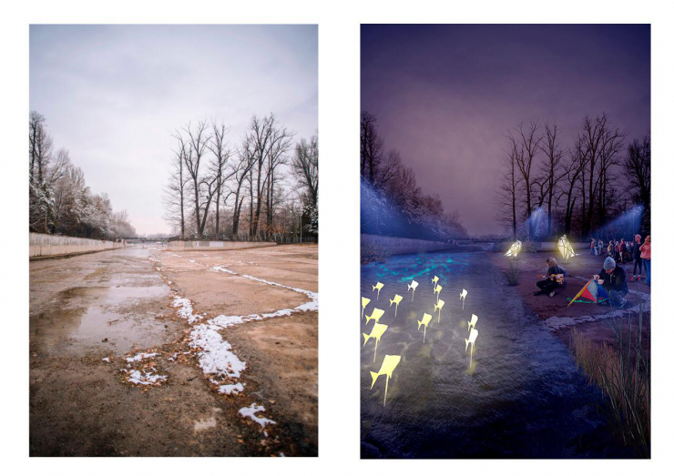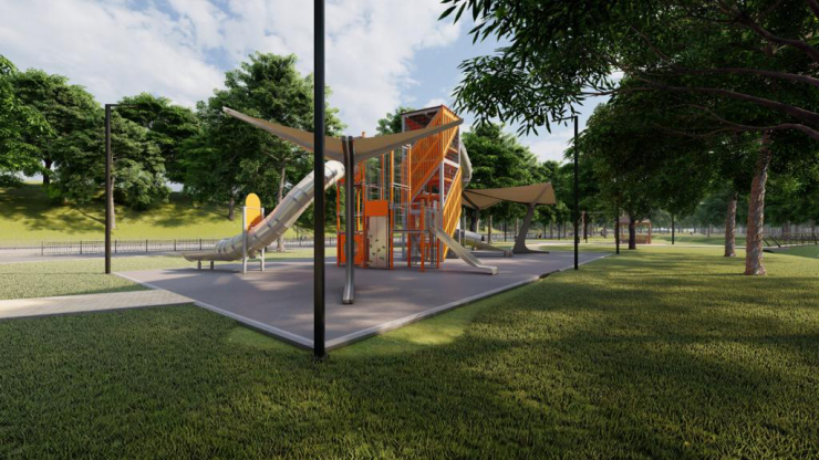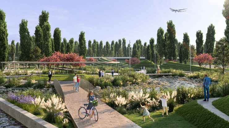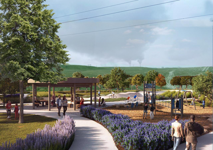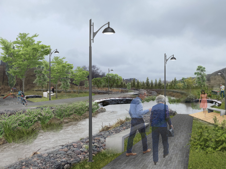 "Здесь предусмотрена установка детских и спортивных площадок, использование природного ландшафта для создания озера. Дополнительное озеленение подчеркнет природный ландшафт и уникальность самого места.