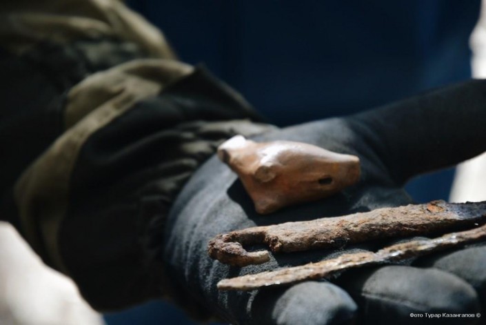Буквально на второй день поисков сотрудник Соколовско-Сарбайского обогатительного производственного объединения Омербек Кожахметов вместе с представителем Павлодарского государственного педагогического университета Алибеком Кабылдиновым в районе деревни Гайтолово поднял безымянного солдата, который погиб во время авианалета.