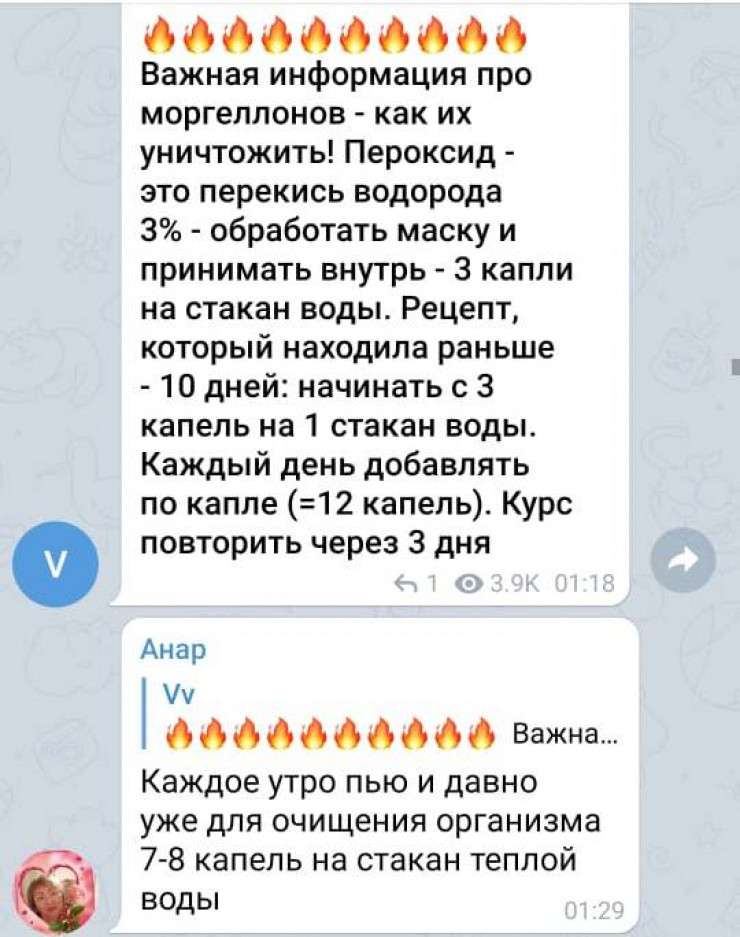Тем не менее некоторые пользователи Казнета продолжают развивать эту теорию и делятся советами о том, как избавиться от несуществующих червей. В частности, всем, кто носит маски, рекомендуют пить перекись водорода.