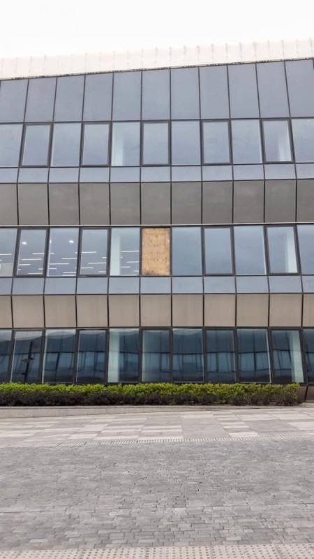 "В целях обеспечения безопасности установлены деревянные заглушки", - говорится в сообщении. В компании просят не делать скоропалительных выводов в отношении внешнего вида окон.