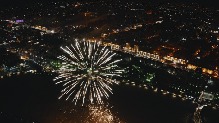 Жители и гости столицы могли наблюдать за фейерверком с набережной реки Есиль, возле Хан Шатыра, а также на пересечении проспекта Абылай хана и улицы Пушкина. 10-минутный фейерверк запустили в 21.00 по местному времени.