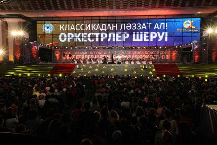 На сцене выступят Казахский Государственный академический оркестр народных инструментов имени Курмангазы, академический фольклорно-этнографический оркестр "Отырар сазы" имени Нургисы Тлендиева, эстрадно-симфонический оркестр акима города Алматы и Государственный духовой оркестр Республики Казахстан.