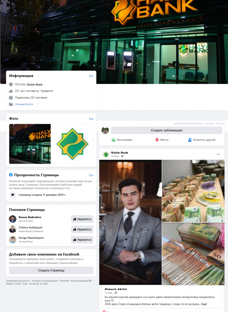 Фейковая страница казахстанского банка появилась в соцсети. В редакцию Stopfake.kz обратился читатель с просьбой проверить подлинность страницы банка в Facebook. Исходя из указанной в аккаунте информации, она принадлежит Halyk Bank, однако отмечена как "личный блог", передает Tengrinews.kz.