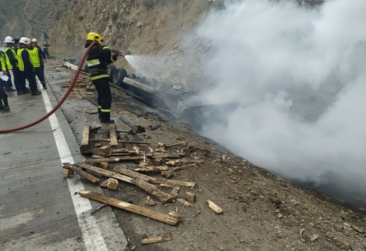 "На место аварии прибыли пожарно-спасательные отряды МЧС, которые в течение 25 минут ликвидировали пожар. Во время тушения одна сторона перевала была временно закрыта", - пояснили в министерстве.