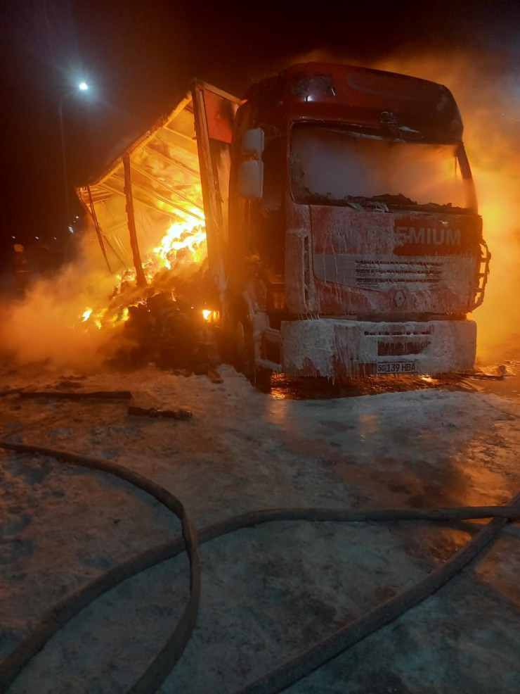 Фура с узбекским трикотажем сгорела на трассе Павлодар - Нур-Султан