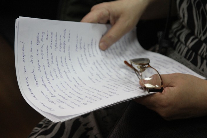 Назарова сотқа бірнеше беттік мәтін дайындап әкелген