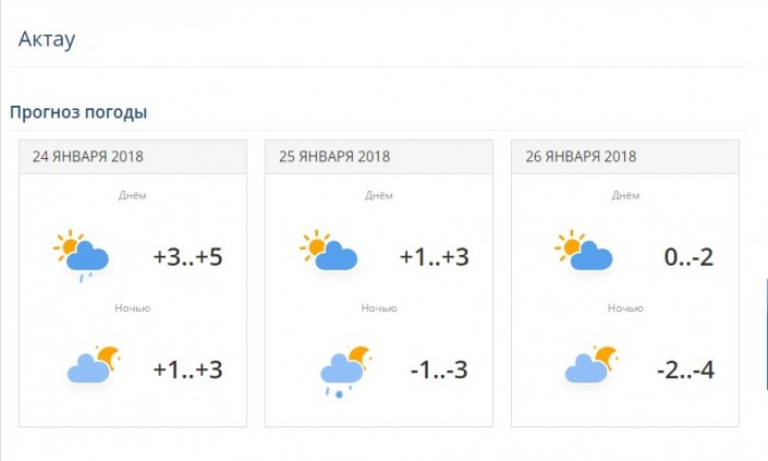 24 января в Актау выдалась облачная погода, местами дождь, днем температура воздуха составила +3...+5 градусов. В четверг, 25 января, воздух прогреется до +1...+3 градусов. 26 января - от 0 до -2 градусов.