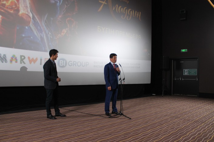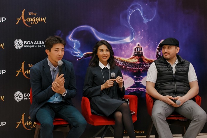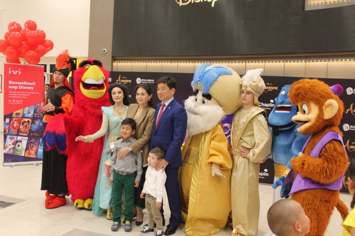 На предпоказ "Аладдина" были приглашены известные казахстанские артисты, блогеры со своими детьми. Среди почетных гостей премьерного показа был аким города Бауыржан Байбек со своей супругой и сыновьями.