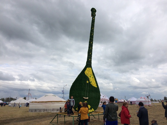 "Ее ширина - 2,7 метра, высота вместе с постаментом - 11 метров, основа металлическая, покрытая искусственным газоном. Изготовление любимого казахами народного инструмента заняло три дня. Домбра состоит из двух частей, которые мы в единое целое собирали уже на месте в этноауле. Ювелирную сборку гигантского инструмента провели сотрудники ИП "Булат". Один из символов национального творчества казахов - домбра - стал популярной фотозоной праздника. В дальнейшем планируется, что необычный "инструмент" найдет свое место во дворе экибастузской музыкальной школы", - рассказала Бугумбаева.