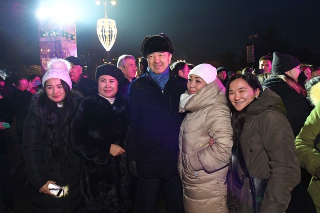 Главное действо происходило на площади "Астана", где была установлена 20-метровая лесная красавица. В предновогодней церемонии принял участие аким Алматы Бакытжан Сагинтаев.