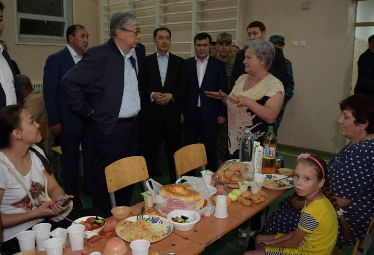 Уже на следующий день, несмотря на сохраняющуюся угрозу падения фрагментов снарядов на город, Токаев отправился в Арысь. Президент провел объезд пострадавшего города, встретился с горожанами в эвакуационном пункте и пообещал позаботиться о них.