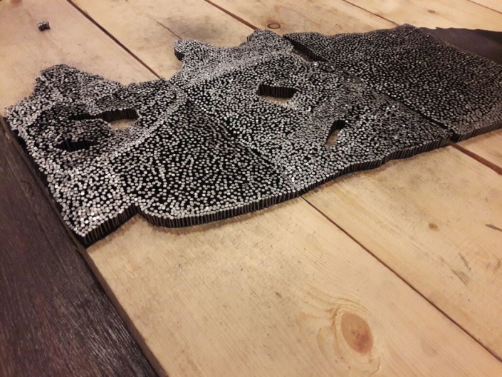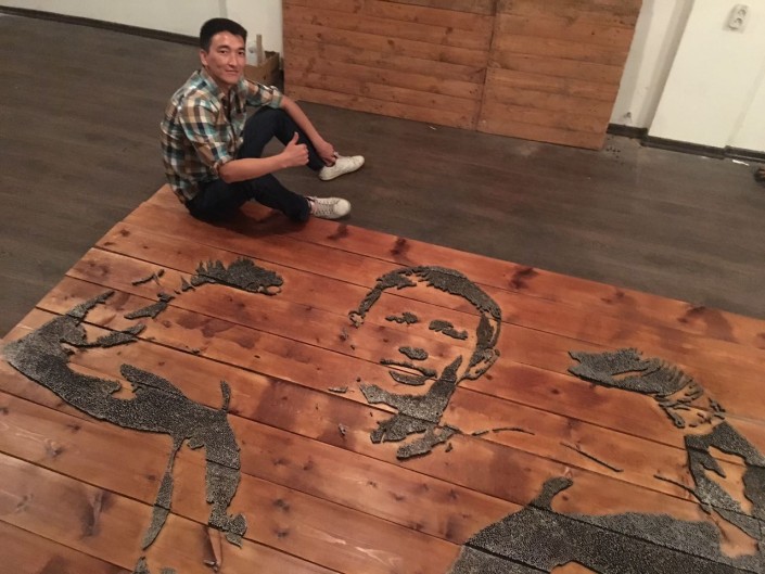 Как сообщил корреспонденту создатель картины Азамат Талгатбекулы, на создание изображения размером два на три метра и весом в 150 килограммов у него ушло 45 дней работы и около 56 тысяч металлических гвоздей.