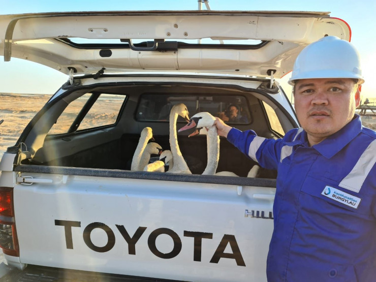 "По просьбе начальника территориальной инспекции животного мира Нурлана Имангалиева "Эмбамунайгазом" была обеспечена транспортировка лебедей с месторождения Кошкар до речки Соколок, в пресную воду, то есть в естественную среду обитания", – сообщили в пресс-службе ЭМГ.