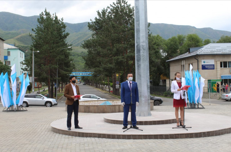 В условиях карантина он пожелал жителям города и всего региона крепкого здоровья и передал право торжественного поднятия флага многократной чемпионке Азии, чемпионке мира по карате 2018 года Акранбек Асемай, которая под сопровождение государственного гимна Республики Казахстан подняла его на флагшток высотой 25 метров.