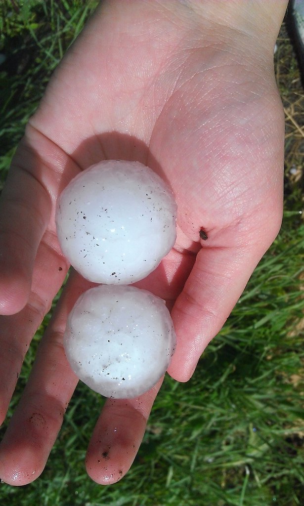 Диаметр выпавшего града, по словам жителей поселка Комсомольский, составил пять сантиметров. Жители рассказывают также, что первое, что они начали делать - фотографировать осадки в сравнении с куриным яйцом. Размеры почти не отличались.