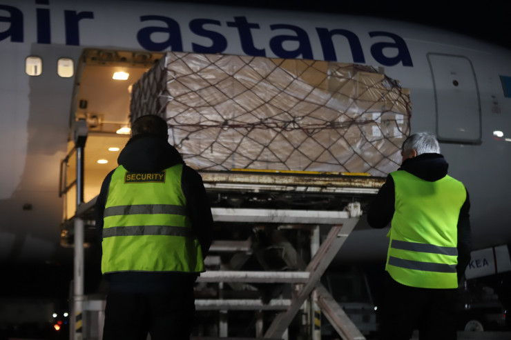 Самолет с гуманитарным грузом вылетает по маршруту аэропорт Алматы - город Катовице в Польше, откуда эвакуировали граждан Казахстана, вывезенных из Украины. Погрузка производилась на самолет Boeing 767 компании Air Astana.