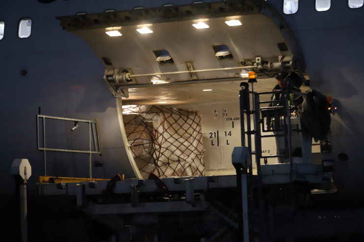 С помощью автоматизированного погрузчика сотрудники аэропорта поместили в грузовой отсек воздушного судна четыре контейнера с лекарствами весом по несколько тонн каждый всего за 20 минут.