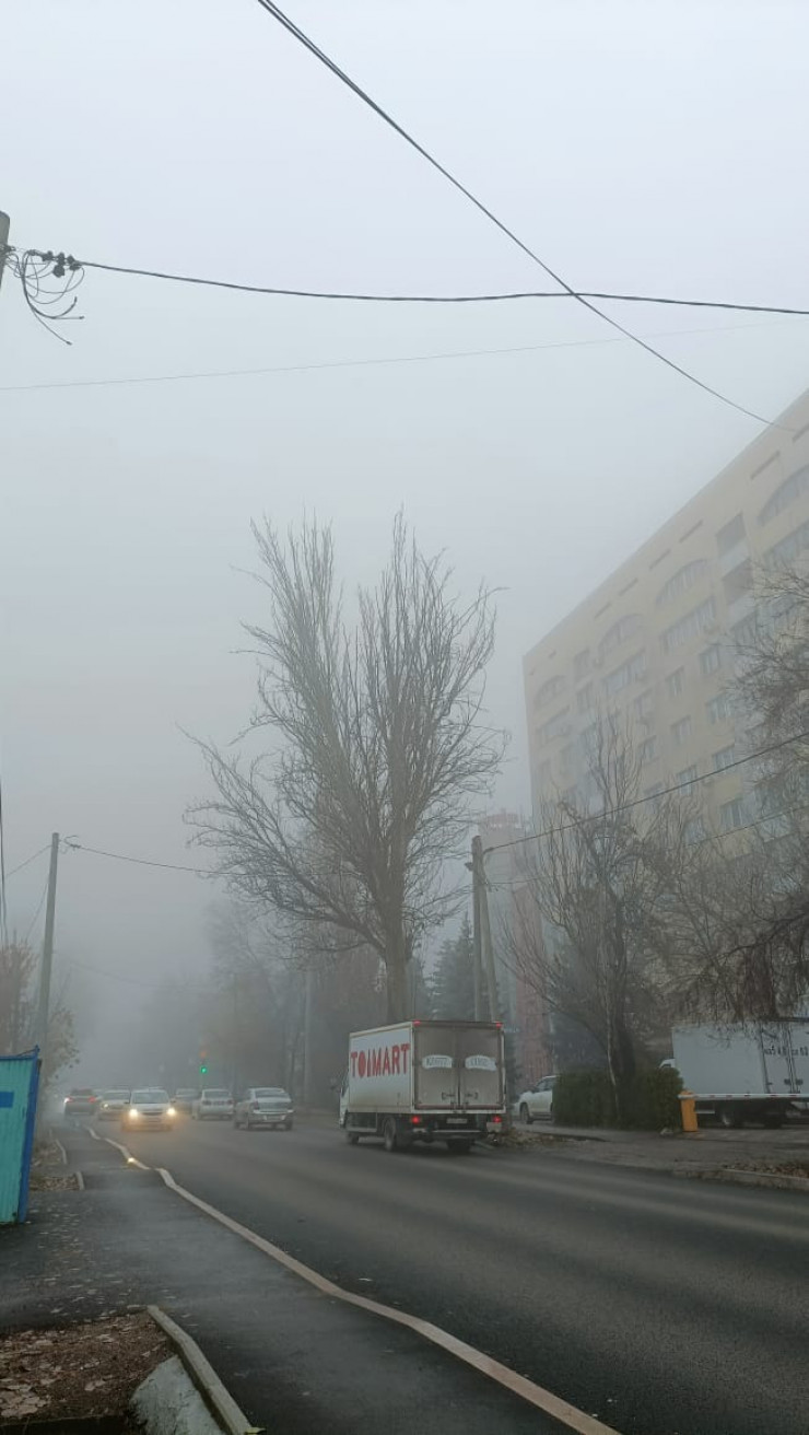 Алматинцы сообщают о густом тумане, который окутал город с ночи 23 ноября. На дорогах ночью и утром наблюдается плохая видимость.