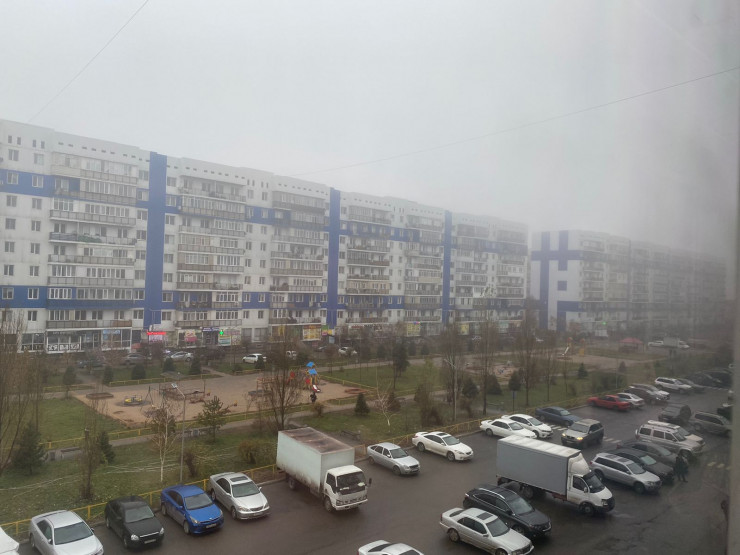 С самого утра видимость на улицах была не больше нескольких сотен метров. Такой "Сайлент Хилл" можно было наблюдать и в ближайших окрестностях города, в районе ЖК "Асыл Арман".