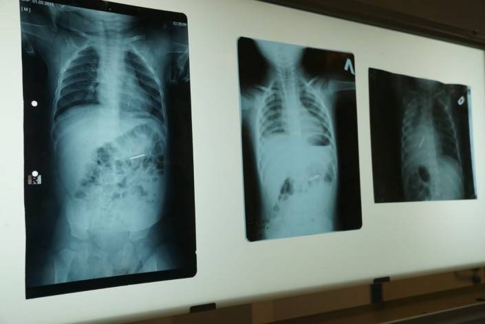 Рентген-снимки ребенка с инородным предметом в организме