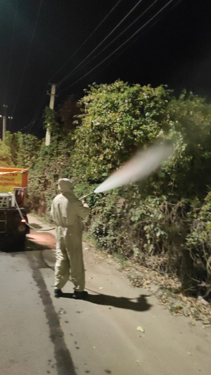 Отметим, что обработка от вредителей представляет собой распыление биологических и химических препаратов с применением специальной техники. Эти работы выполняют люди в специальных защитных костюмах.