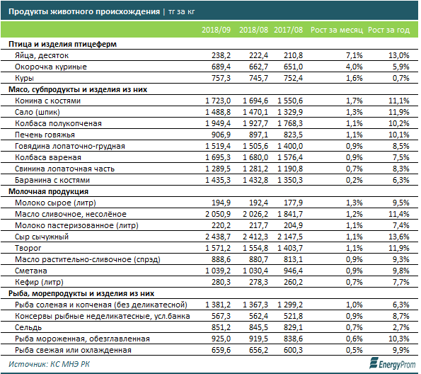 По итогам сентября в Казахстане выросли цены на продукты животного происхождения, передает корреспондент Tengrinews.kz со ссылкой на Energyprom.kz.