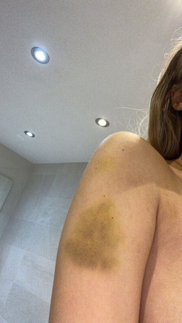 Девушка опубликовала фотографии в Instagram Stories, на которых запечатлены кровоподтеки на ее лице и синяки на руках и ногах.