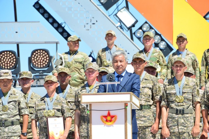 Министр обороны Казахстана Имангали Тасмагамбетов поздравил призеров Армейских международных игр-2016, передает корреспондент Tengrinews.kz со ссылкой на пресс-службу ведомства. Награждение победителей конкурсов "Мастера артиллерийского огня" и "Снайперский рубеж" состоялось сегодня, 9 августа, на полигоне "Гвардейский" в Казахстане.