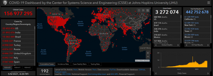 По данным Института Джонса Хопкинса, который считает официальные данные стран, в мире от коронавируса скончались 3 271 445 человек. Казахстан в этом списке на 66-м месте по количеству умерших.