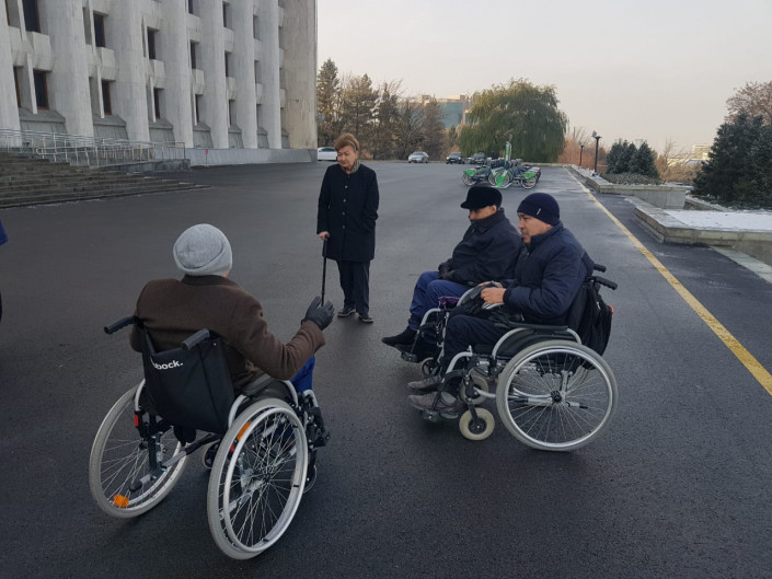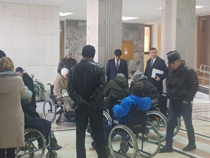 У здания городской администрации члены Ассоциации инвалидов ЕРЗИ собрались утром 22 ноября. Руководитель НПО Ербол Игембергенов рассказал корреспонденту о своих требованиях.