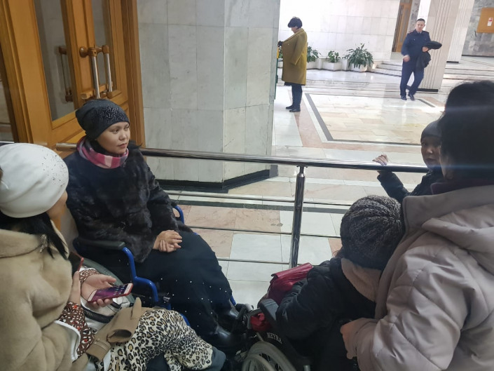 Инвалиды-колясочники собрались возле акимата Алматы Фото ©Tengrinews.kz