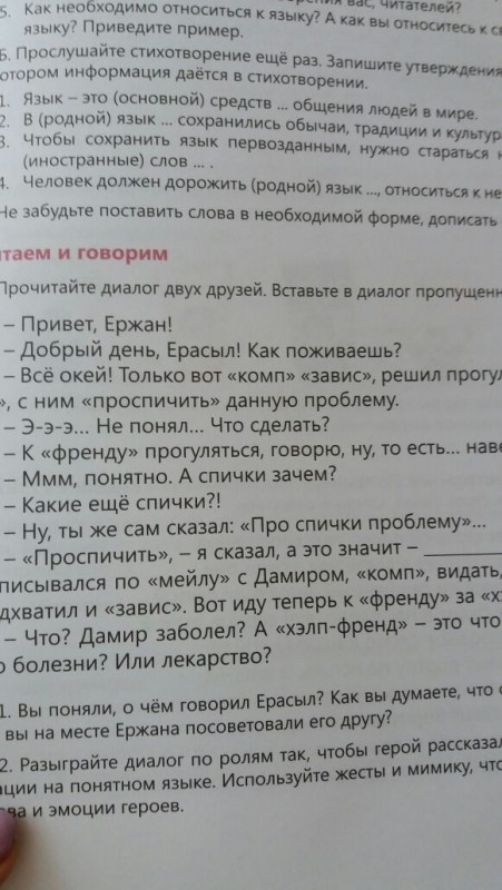 Одна из разработчиков учебника по русскому языку для 5 класса объяснила применение сленга в задании, передает корреспондент Tengrinews.kz.