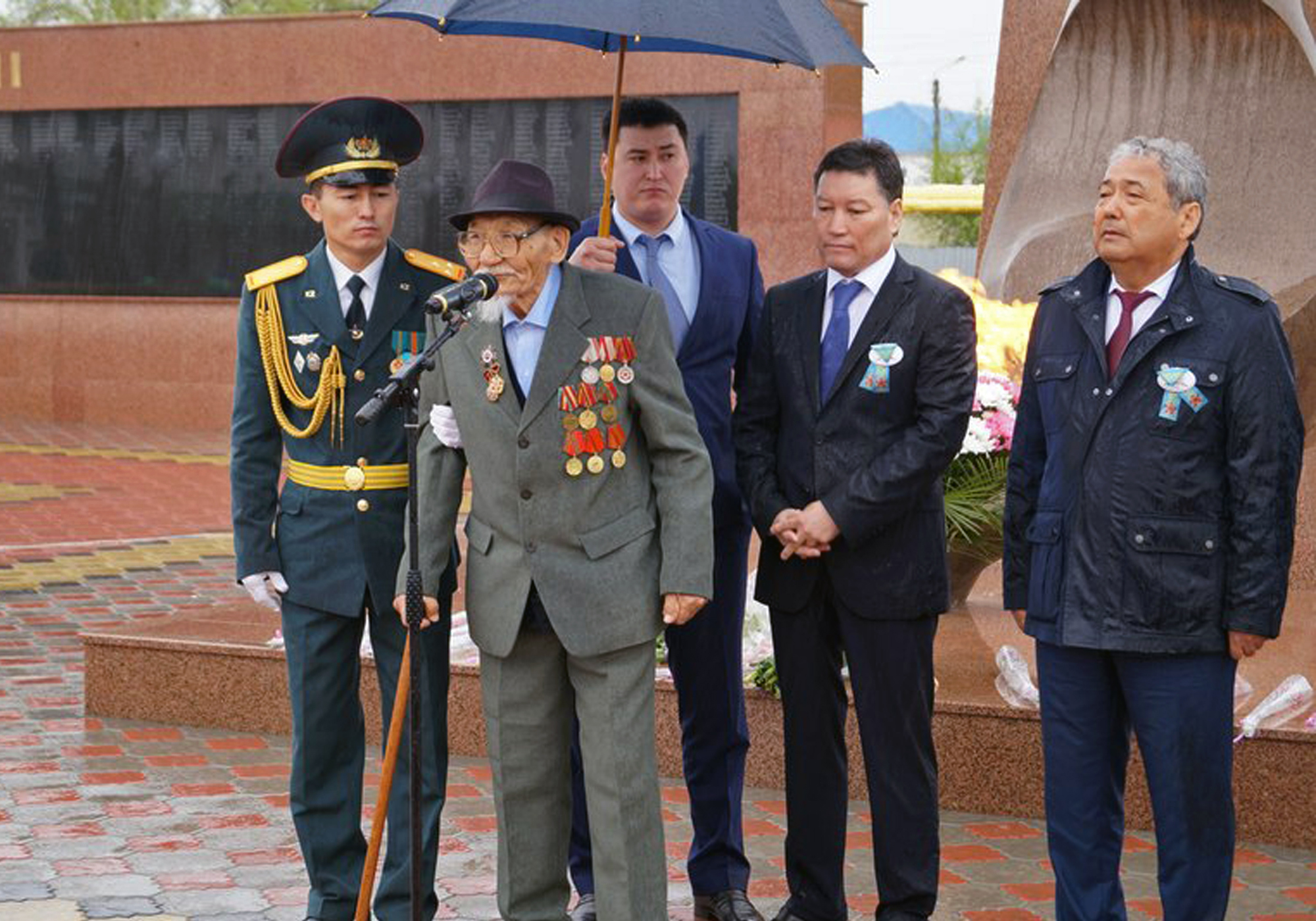 История с фотографией, на которой вместо ветерана ВОВ под зонтом укрывают замакима Атырауской области, получила продолжение, передает корреспондент Tengrinews.kz. Как сообщалось ранее, замакима области Салимжан Накпаев на торжественном открытии обелиска стоял под зонтом, в то время как ветеран Великой Отечественной войны - под дождем.
