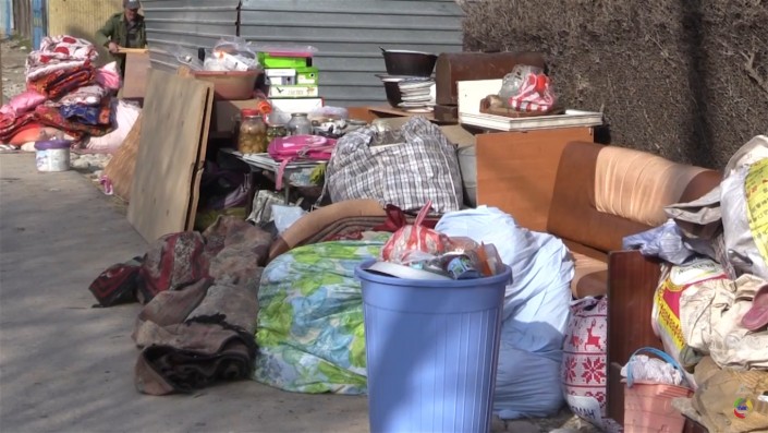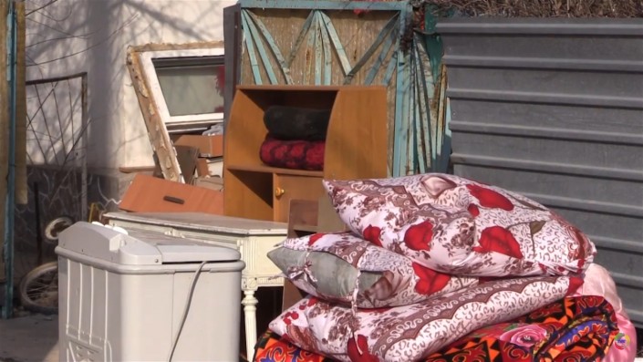 Мебель и домашняя утварь выставлены прямо на улицу. © tvk-uko.kz
