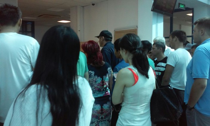 Из-за сбоя связи в спецЦОНе Астаны образовались очереди, сообщает корреспондент Tengrinews.kz.
