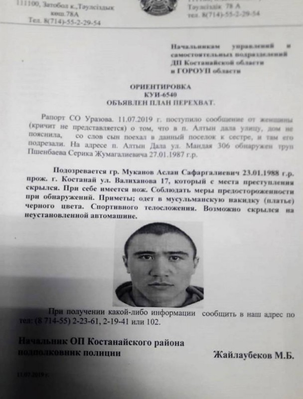 Возвращение на родину для Муканова закончилось плачевно. 11 июля в поселке Алтын Дала обнаружили труп Серика Пшенбаева, 1987 года рождения. На дежурный пульт поступил звонок от неизвестной женщины. С ее слов, убитый поехал в поселок к сестре, но был зарезан ножом. В убийстве подозревается Муканов. В Костанайской области объявили план "Перехват" и вскоре задержали боксера.