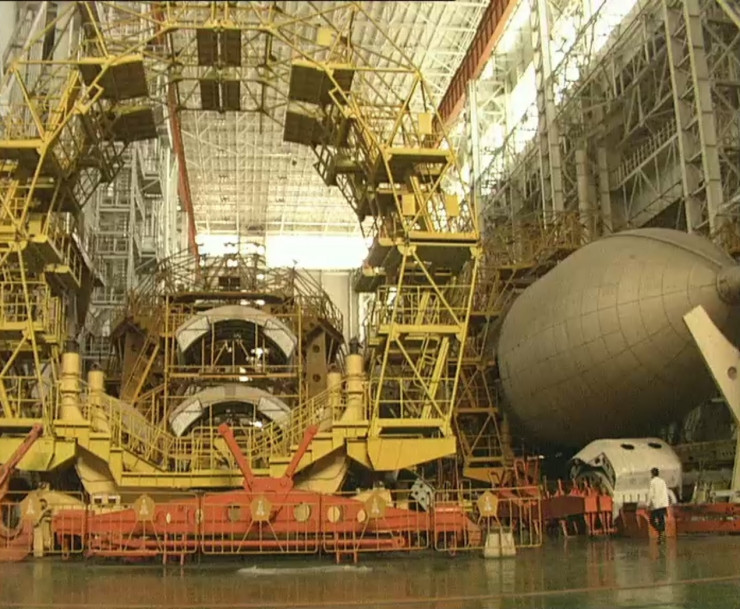 "112-я площадка представляла собой гигантский, просто циклопических размеров ангар высотой примерно с 20-этажное здание и площадью в шесть футбольных полей. Монтажно-испытательный комплекс состоял из трех секций. В центральной был главный сборочный комплекс так называемого пакета, то есть это ракета "Энергия", четыре боковых разгонных блока к ней, а сверху на специальных консолях крепился космический корабль "Буран". Конструкция была зафиксирована на специальных стендах. Тот самый, который в 1988 году совершил единственный в рамках проекта полет в космос. Секции ангара были разделены обитаемыми помещениями высотой примерно в 16 этажей. Это очень напоминало жилой дом с длинными балконами, где работали инженеры и технический персонал. В боковых секциях МИКа находилась еще одна собранная в пакет ракета "Энергия", различные стенды для испытаний и отдельно лежащие боковые блоки. Все это было сегментировано - двигатели отдельно, головные обтекатели отдельно", - отметил он.