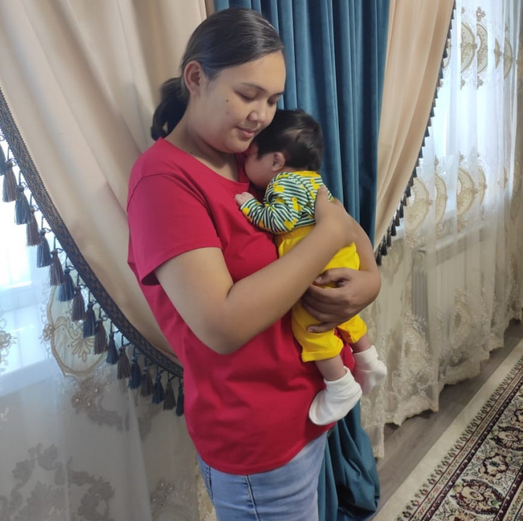 Назгуль Кобентаева со своей новорожденной дочерью Жанией