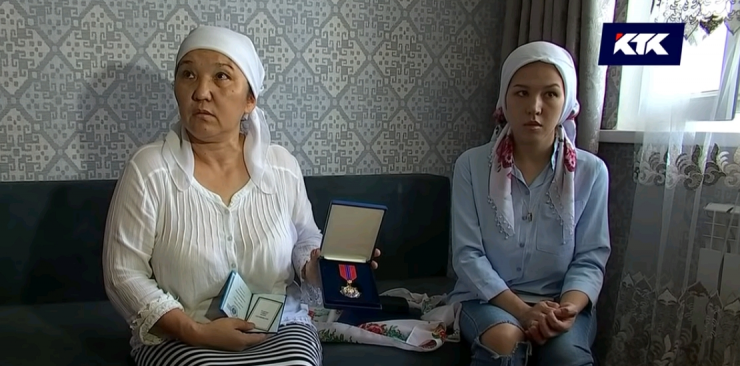Мать и жена погибшего полицейского Дастана Абдыканова. © ktk.kz