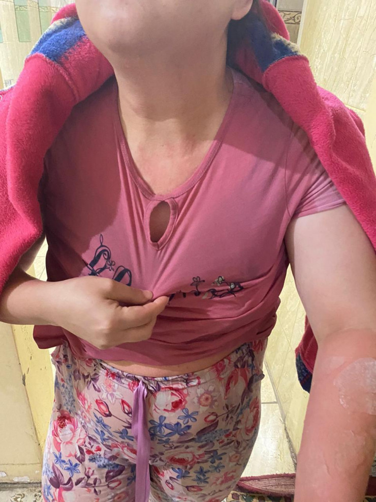 "Вчера вечером я пришла домой с работы. Вышла на кухню, чтобы поставить чай. Кухня у нас общая. Около плиты стояла та женщина, я к ней подошла и попросила подвинуть ее посуду, так как не помещается, на плите работали только 2 конфорки. Я говорю ей: "Тате, вы можете чуть отойти", она накричала на меня, начала материть: "Какая я тебе тате, я 1991 года рождения". Я с ней не ругалась. Она взяла кипяток и на меня вылила", - рассказала женщина.