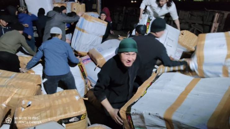 "Рано утром мы выехали на место аварии, для того чтобы узнать, чем можно помочь ребятам из Турции. Они рассказали, что везут товар из Турции в Актобе, но из-за сильного тумана им пришлось остановиться у обочины. К сожалению, машину стянуло в кювет, и она перевернулась. Сразу поднять фуру на колеса не получилось бы, так как она груженная товаром. Тогда я через социальные сети и среди моих знакомых кинул клич о помощи. В этот же день, 6 апреля, собралось более 100 добровольцев", - рассказал Айдынов.