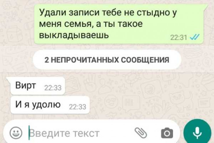 Помимо звонков, молодая мама получает череду непристойных сообщений. Екатерина обратилась в службу поддержки соцсети "Одноклассники". Страницу заблокировали, объявление удалили, но скриншот уже "гулял" по WhatsApp.